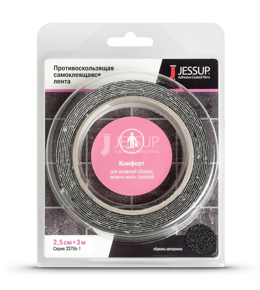 Jessup® Safety Track® 3375/Office series 46 Grit - черный профессиональный противоскользящий абразивный самоклеящийся материал со скругленным абразивом в лентах с шириной 2,5 и 5,0 см. и длинной 3 метра в блистерной упаковке. Материал разработан для длительного использования в местах с интенсивной проходимостью в легкой, средней и тяжелой обуви, где необходима влажная уборка обычной тряпкой.