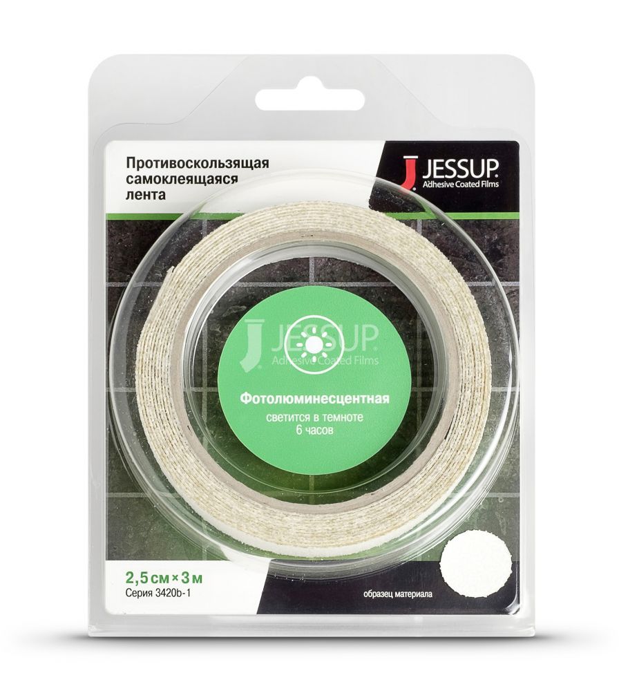 Jessup® Safety Track® 3420 Photoluminescent series 60Grit - фотолюминесцентный профессиональный противоскользящий абразивный самоклеящийся материал в лентах с шириной 2,5 и 5,0 см. и длинной 3 метра в блистерной упаковке, разработанный для выделения опасных зон в полной темноте.