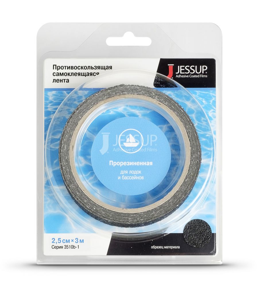 Jessup® Safety Track® 3500 Resilient series - профессиональный противоскользящий неабразивный прорезиненный самоклеящийся материал в лентах с шириной 2,5 и 5,0 см. и длинной 3 метра в блистерной упаковке, разработанный для хождения босиком и в легкой, средней и тяжелой обуви.