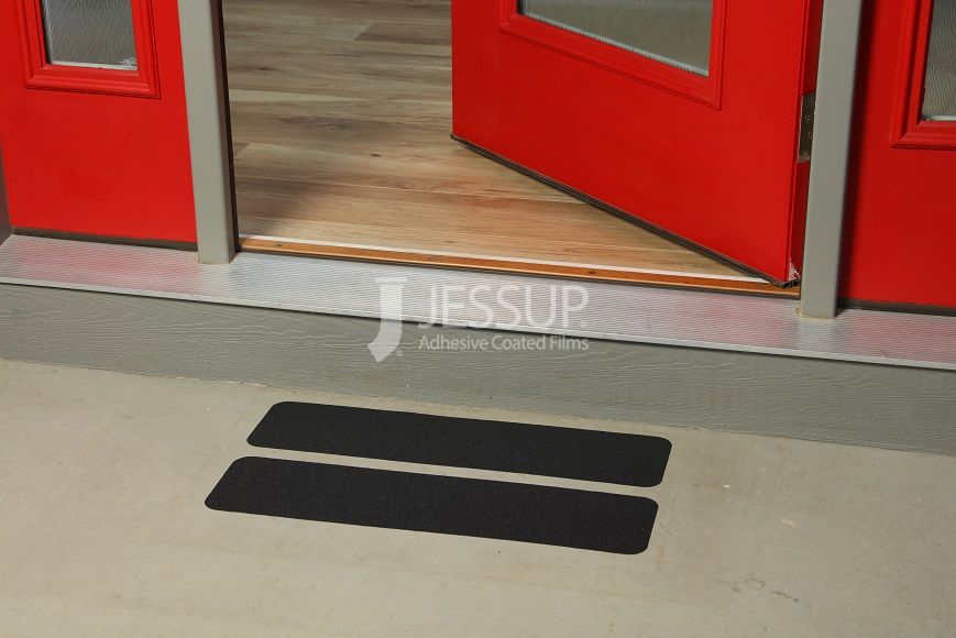 Jessup® Safety Track® 3375/Office series 46 Grit - черный профессиональный противоскользящий абразивный самоклеящийся материал со скругленным абразивом в пластинах различных форм и размеров. Материал разработан для длительного использования в местах с интенсивной проходимостью в легкой, средней и тяжелой обуви, где необходима влажная уборка обычной тряпкой.
