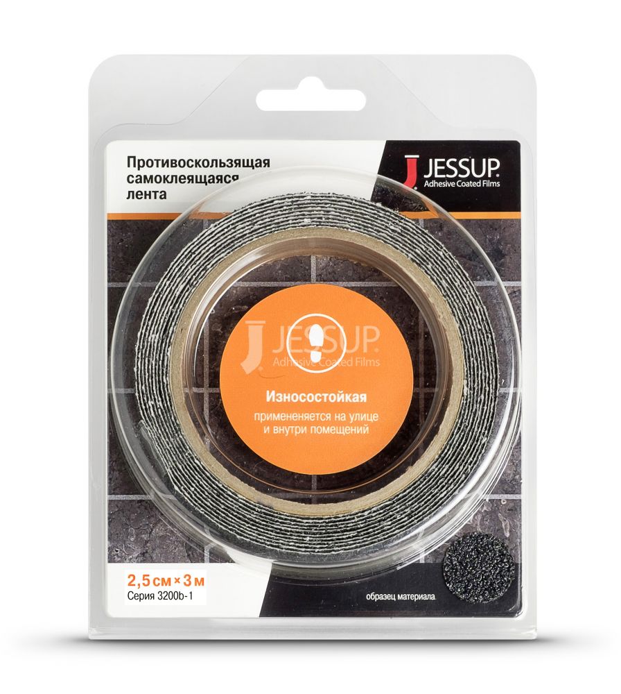 Jessup® Safety Track® 3200/Coarse series 46 Grit - профессиональный противоскользящий абразивный самоклеящийся материал в лентах с шириной 2,5 и 5,0 см. и длинной 3 метра в блистерной упаковке. Материал разработан для длительного наружного/внутреннего применения в условиях агрессивных сред и интенсивной проходимости в тяжелой и средней обуви.