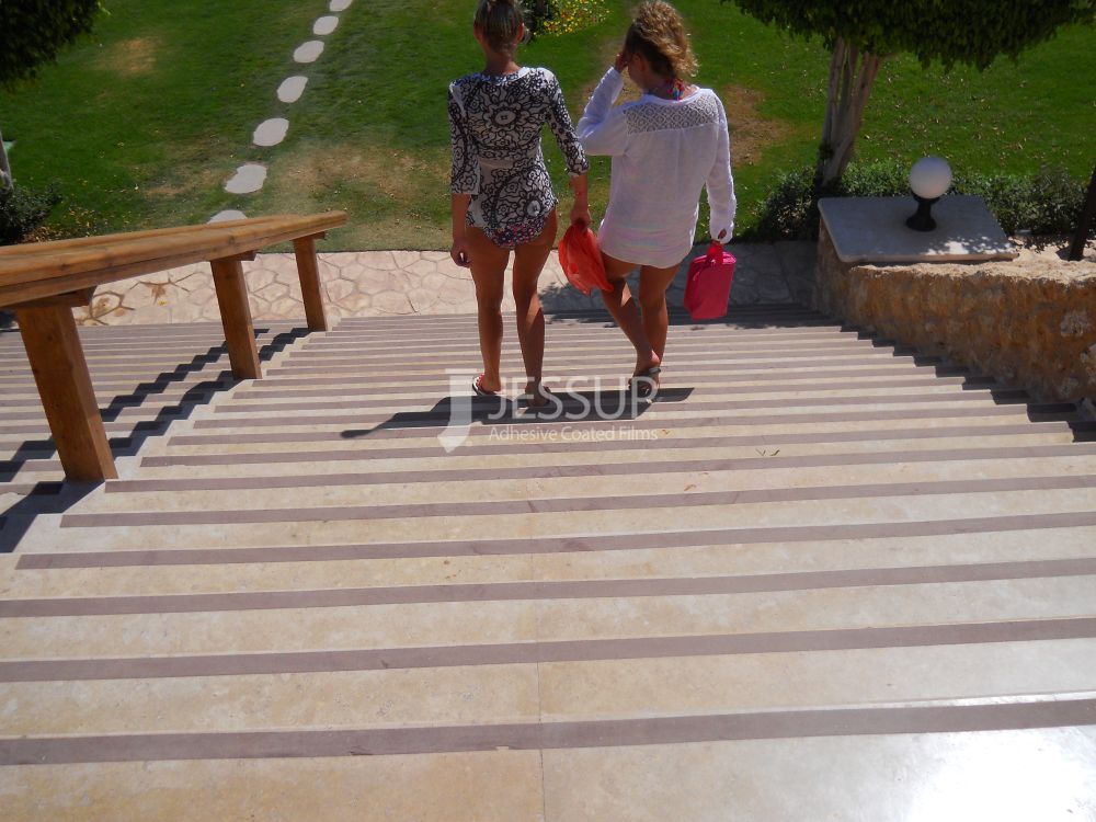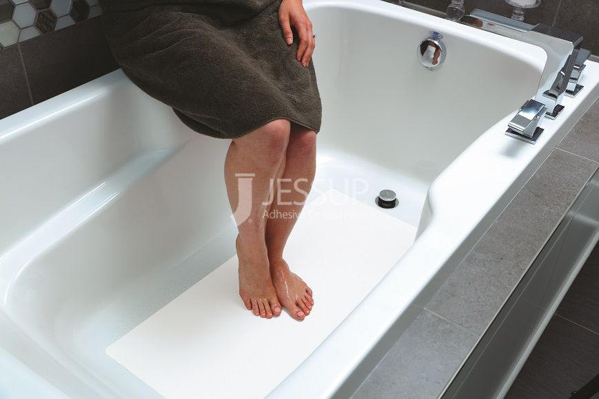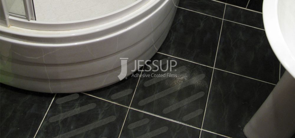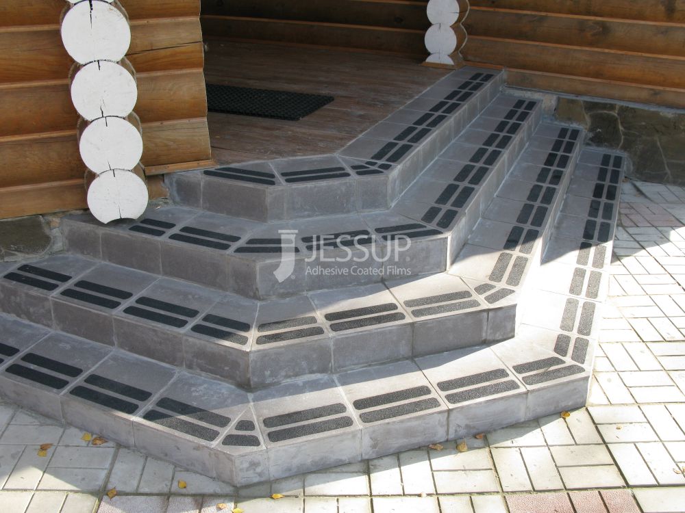 - виниловые противоскользящие ленты обычно используются в местах, где ходят в легкой обуви и босиком, (например, лестницы в коттеджах, ванные комнаты, сан. узлы, постирочные, бани, сауны, комнаты с водными процедурами в санаториях, тренажерные залы и т.п.). Особыми свойствами виниловых самоклеящихся противоскользящих лент Jessup® Flex Track® является высокая стойкость к воде и различным растворам моющих средств, что позволяет применять их в воде (например, в чашах ванн, душевых кабинах, спусках в бассейны и т.п.).