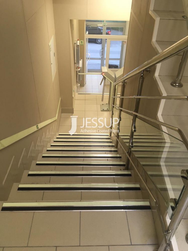 Применение: выделение краев ступеней, площадок на внутренних лестницах, выделение пандусов, наклонных поверхностей и т.д. в офисах, магазинах и других общественных помещениях.