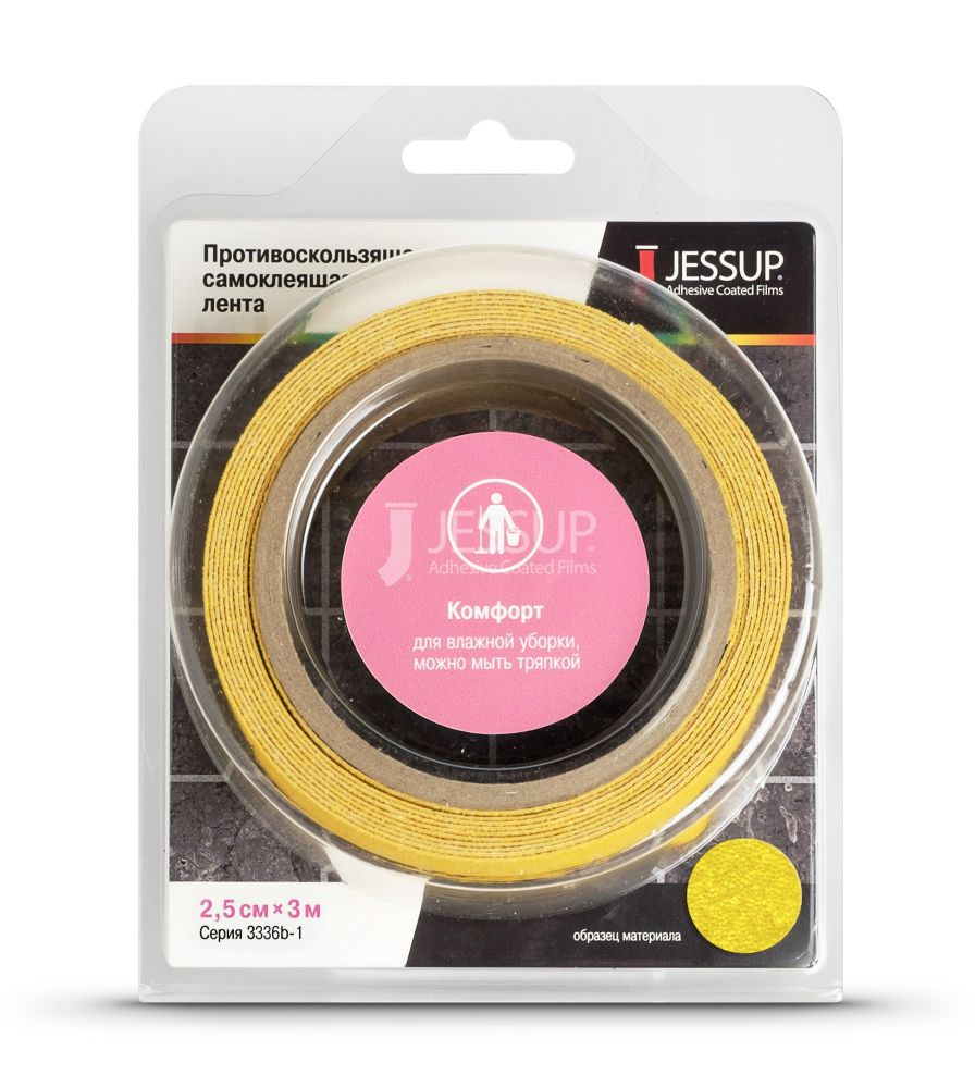 Jessup® Safety Track® 3336/Office series 46 Grit - желтый профессиональный противоскользящий абразивный самоклеящийся материал со скругленным абразивом в лентах с шириной 2,5 и 5,0 см. и длинной 3 метра в блистерной упаковке. Материал разработан для длительного использования в местах с интенсивной проходимостью в легкой, средней и тяжелой обуви, где необходима влажная уборка обычной тряпкой.