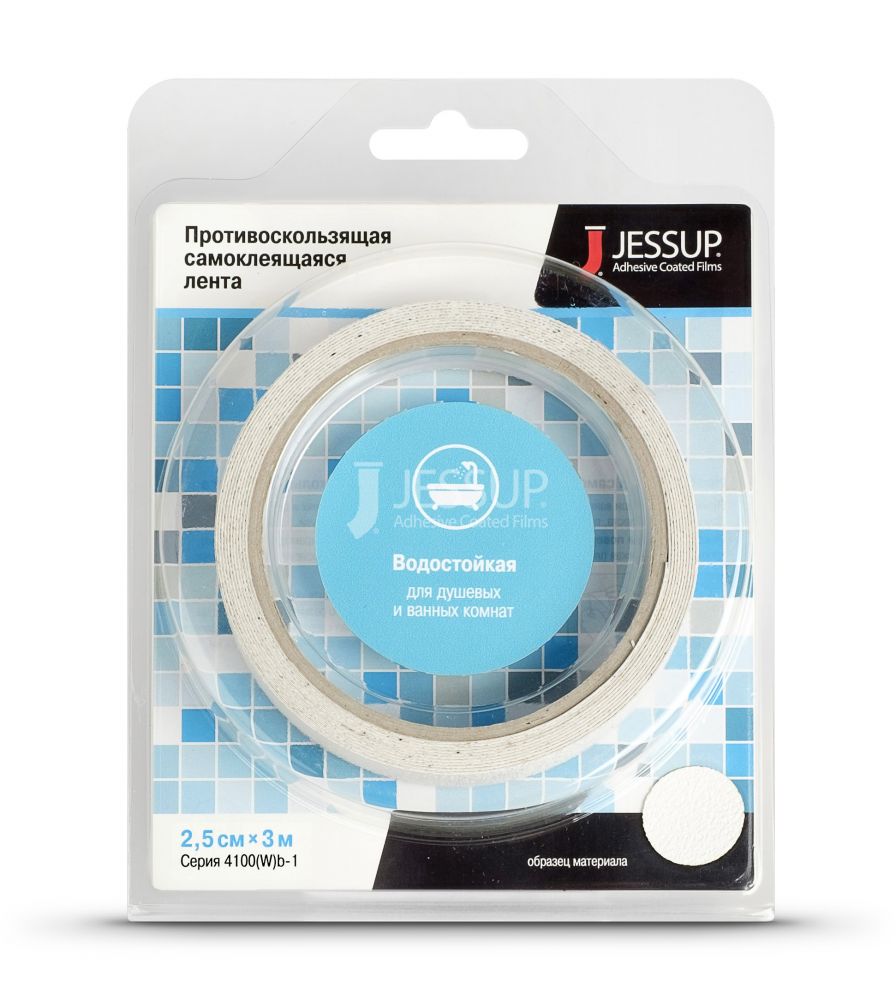 Jessup® Flex Track® 4100 - серия профессиональных противоскользящих неабразивных самоклеящихся полимерных материалов с структурированной противоскользящей поверхностью в лентах с шириной 2,5 и 5,0 см. и длинной 3 метра в блистерной упаковке, разработанный для хождения босиком, в легкой и средней обуви.