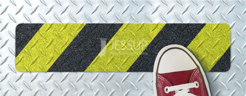 Jessup® Safety Track® 3360/Black Stripe 80 Grit - желто/черный абразивный профессиональный противоскользящий самоклеящийся материал в лентах различной ширины, длинной 18,288 метров, разработанный для универсального использования в местах с интенсивной проходимостью.